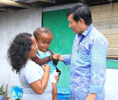 MANADO, (manadoterkini.com) – Rasa prihatin atas keadaan yang dialami oleh seorang anak di bawah umur lima tahun (Balita)  warga Karangria Tuminting Kelebihan Cairan di Kepala (Hidrosefalus). Rafael umur 5 tahun yang digendong ibunya Ratna, spontan Walikota Manado GS Vicky Lumentut (GSVL) langsung turun dari mobil dan mendatangi rumah Zakharia Samel bapak dari anak tersebut.