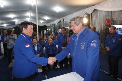 Ketua DPD GS Vicky Lumentut, ketika menyalami Ketua Umum DPP Partai Demokrat Susilo Bambang Yudhoyono.(ist)