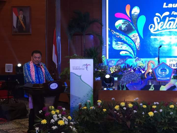manadoterkini.com, SULUT – Promosi Pariwisata Kota Bitung bertajuk Festival Pesona Selat Lembeh (FPSL) mendapat dukungan penuh Gubernur Sulut Olly Dondokambey. Hal itu diungkapkan langsung Olly saat menghadiri pelaksanaan launching FPSL di Balirung Soesilo Sudarman, Gedung Sapta Pesona Kementerian Pariwisata RI, Selasa (13/09) malam. Kegiatan yang ikut di hadiri Menteri Pariwisata Arief Yahya dan Owner Lion Air Group Rusdi Kirana, berlangsung sukses.
