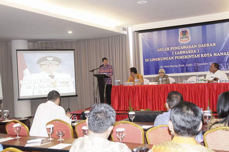 Walikota ManadoPasalnya, hingga kini baru 62,84 persen temuan yang ditindaklanjuti SKPD. Sehingga diharapkan sampai akhir tahun 2016 ini sisa tunggakan bisa diselesaikan. “Saya berharap tunggakan-tunggakan temuan di SKPD dapat diselesaikan secepatnya. Sekarang ini, baru 62 persen diselesaikan, Memang, temuan-temuan ini merupakan akumulasi dari tahun-tahun sebelumnya tidak hanya saat pemerintahan saya dan Pak Mor,” tegas GSVL, sapaan akrab Walikota, saat membuka Gelar Pengawasan Daerah (Larwasda) di ibis Hotel Meeting Room, Kamis (22/9).
