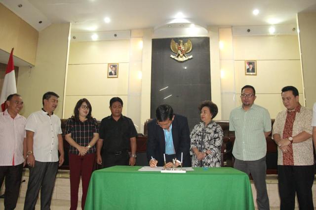 Walikota GS. Vicky Lumentut saat melakukan penandatanganan berita acara dan nota kesepakatan Ranwal RPJMD pekan lalu.(Foto:Humas DPRD)