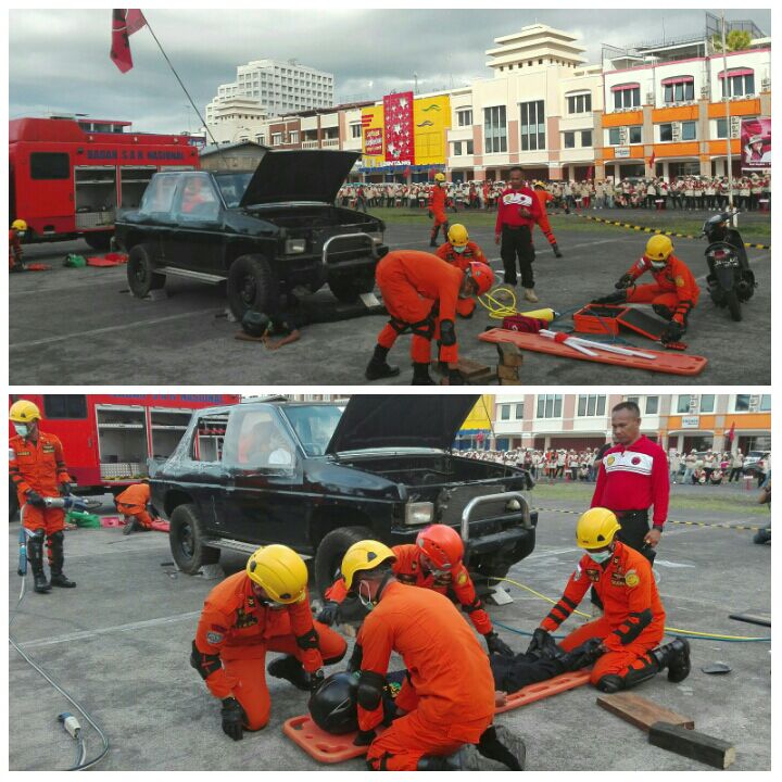 ollymanadoterkini.com, SULUT – Badan SAR Nasional Manado, berkerja sama dengan BAGUNA (Badan Penanggulangan Bencana) PDI Perjuangan dan BPBD (Badan Penanggulangan Bencana Daerah) Provinsi Sulawesi Utara (Sulut) perpanjangan tangan BNPB, Minggu (23/10/2016) hari ini menggelar simulasi penanganan cepat bencana, di lapangan Mega Mas Manado.