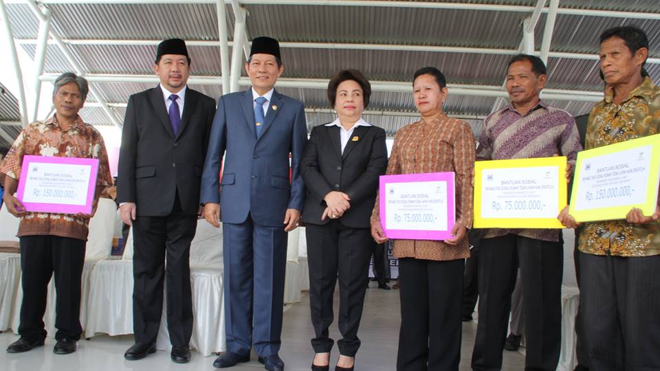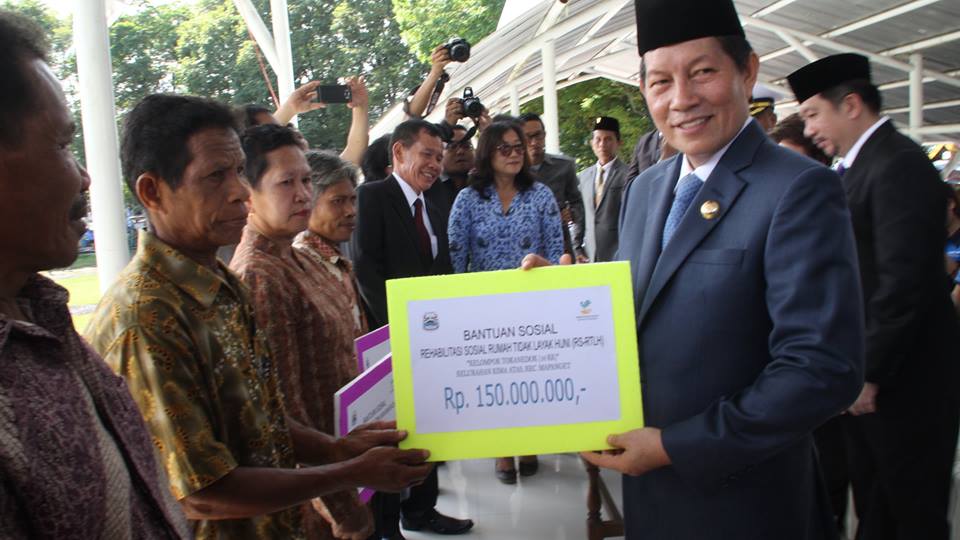 Walikota Manado, GS Vicky Lumentut membagikan bantuan Program Keluarga Harapan (PKH) bagi keluarga miskin didampingi Kadis Sosial Manado, Frans Mawitjere