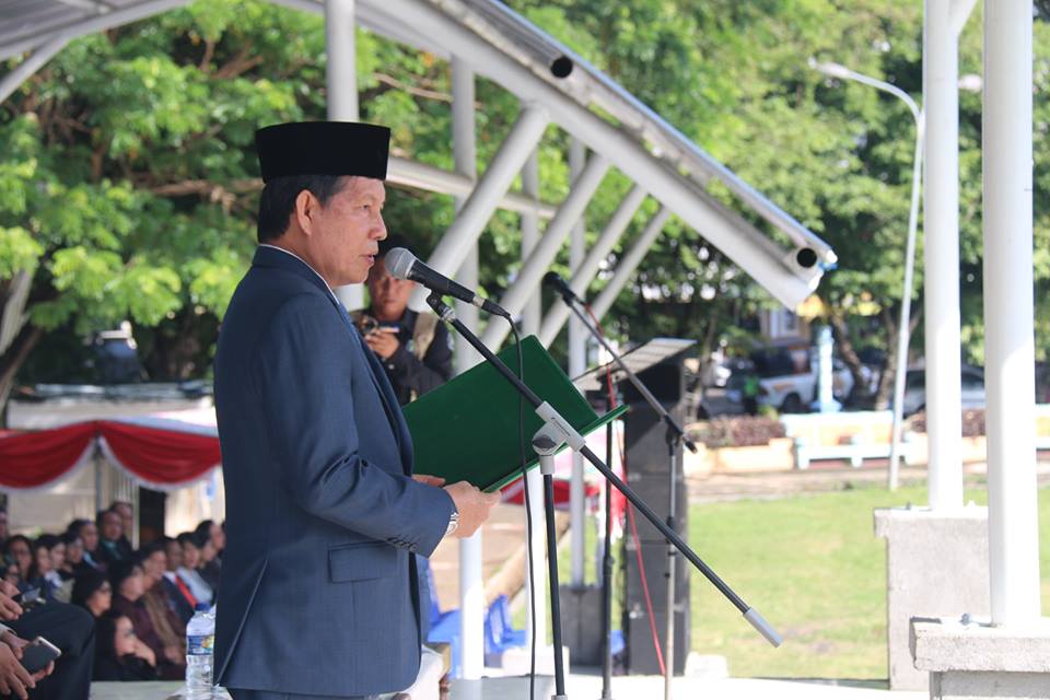 Walikota GS Vicky Lumentut membacakan sambutan Menteri Sosial, Khofifah Indar Parawansa.