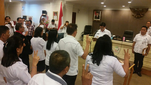 Pelantikan dan sumpah/janji tersebut berdasarkan SK Mendagri nomor 821.2-462 tentang Dukcapil tahun 2017 dan SK Gubernur Sulut 821.2/BKD/SK/223/2017.