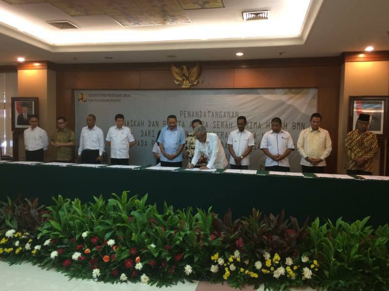 puprmanadoterkini.com, MANADO – Dalam rangka tertib administrasi, Rabu (12/4/2017) kemarin, Walikota Manado DR Ir G.S Vicky Lumentut SH MSi DEA, bersama kepala daerah di Indonesia, melakukan penanda-tanganan Naskah dan Berita Acara Serah Terima Hibah Barang Milik Negara, di ruang Pendopo dan Sapta Taruna, Kementerian Pekerjaan Umum dan Perumahan Rakyat (PUPR) Republik Indonesia, Jalan Patimura Nomor 20, Kebayoran Baru, Jakarta Selatan.