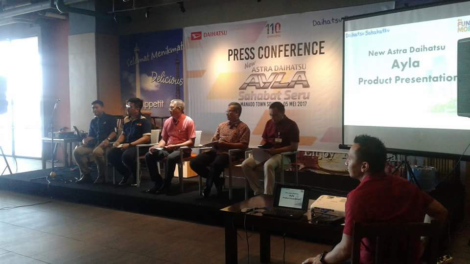 New Astra Daihatsu Ayla yang hadir dengan dua pilihan mesin, yakni 1.2L (1200cc) dual VVT-i dan 1.0L (1000cc), dengan kelebihan utama powerfull, stylish dan nyaman, lebih bertenaga, irit bahan bakar dan emisi gas buangnya semakin baik, diluncurkan secara resmi dan ditandai dengan pengguntingan pita yang dilakukan oleh Manager AI-DSO Manado Sonny Walangare.