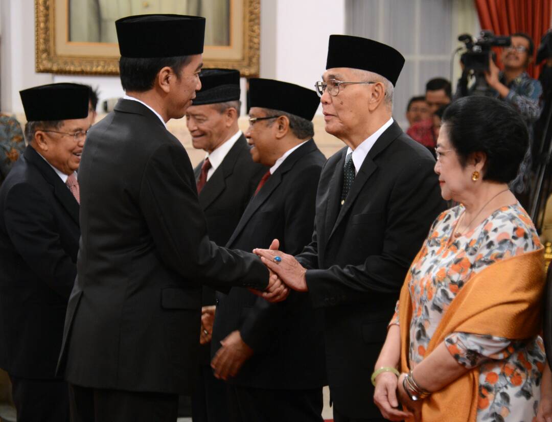 Acara pengangkatan kemudian diakhiri dengan pemberian ucapan selamat yang didahului oleh Presiden Joko Widodo dan Wakil Presiden Jusuf Kalla untuk kemudian diikuti oleh para tamu undangan yang hadir.(*/alfa)