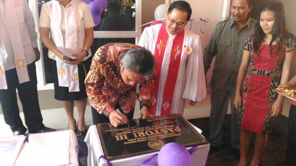 Seusai ibadah pentahbisan ini dilanjutkan dengan penandatangaan prasasti peresmian Pastori oleh Wabup Minsel dan BPS GMIM.