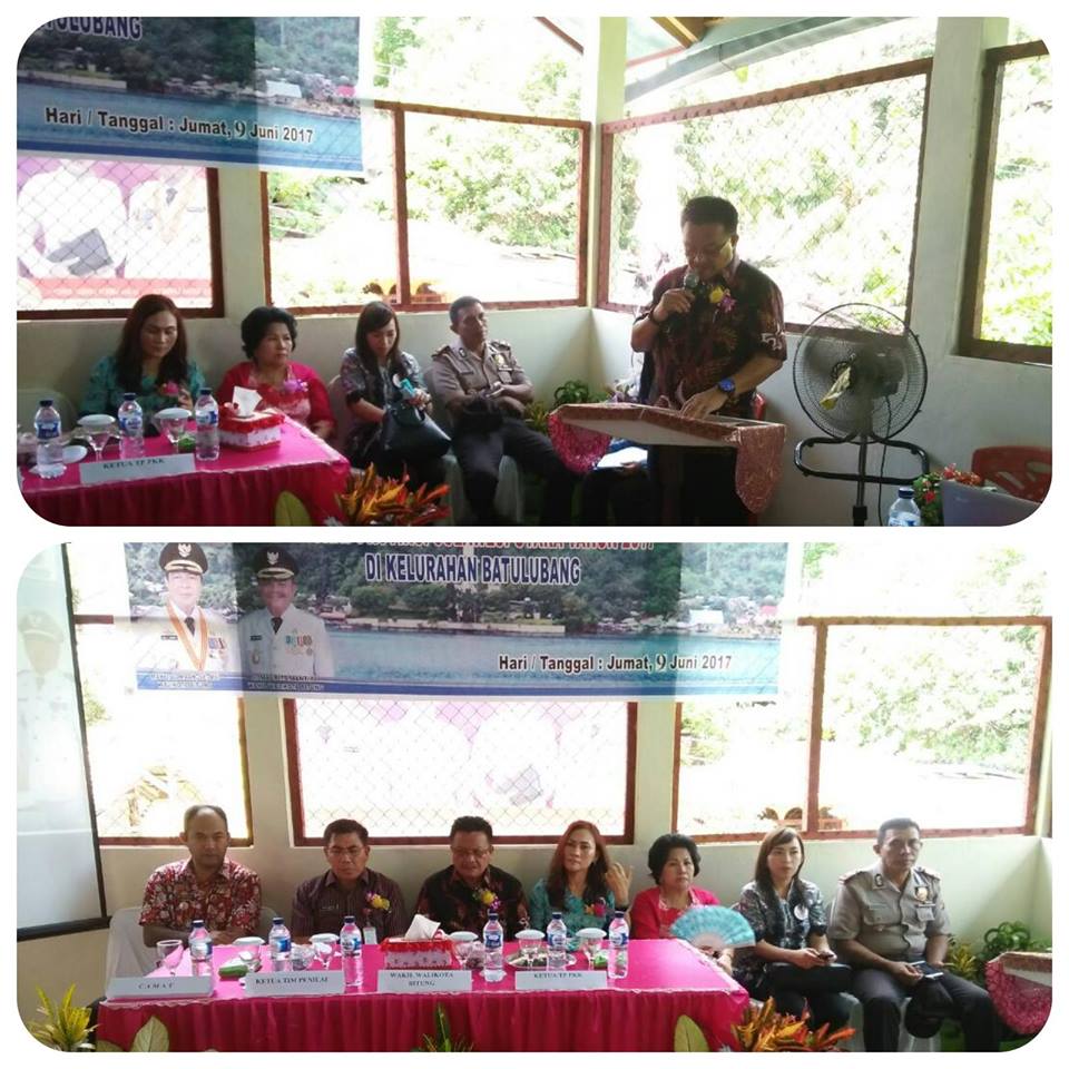 “Sebagai Pemerintah Kota kami menyadari bahwa hal ini tidaklah mudah, karena membutuhkan kerja keras dan kerja sama yang solid dari semua unsur yang ada di Kelurahan Batulubang. Tapi saya percaya, dengan tekad yang disertai rasa persatuan dan kesatuan yang tinggi dari semua komponen anak bangsa yang ada di Kelurahan ini, maka kelurahan Batulubang pun dapat meraih prestasi yang gemilang untuk mengharumkan nama Kota Bitung di tingkat Provinsi Sulawesi Utara (Sulut).” Ujar Mantiri saat menghadiri Evaluasi Perkembangan Desa dan Kelurahan Tingkat Provinsi Sulut yang dilaksanakan di Kantor Lurah Batulubang, Kec Lesat didampingi Ketua TP-PKK Kota Bitung Dra Khouni Lomban-Rawung, MSI ‎bersama Ketua DWP Kota Bitung Ny. dr. Rinny Pangemanan-Tinangon‎‎. Jumat (09/06)