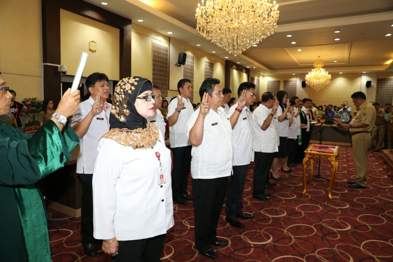 pelantikan pejabatmanadoterkini.com, SULUT – Gubernur Sulut Olly Dondokambey, Senin (10/07/2017) melantik 19 pejabat di lingkungan Pemerintah Provinsi. 9 diantaranya pejabat tinggi pratama atau esalon II dan 10 lainnya adalah pejabat administrator.
