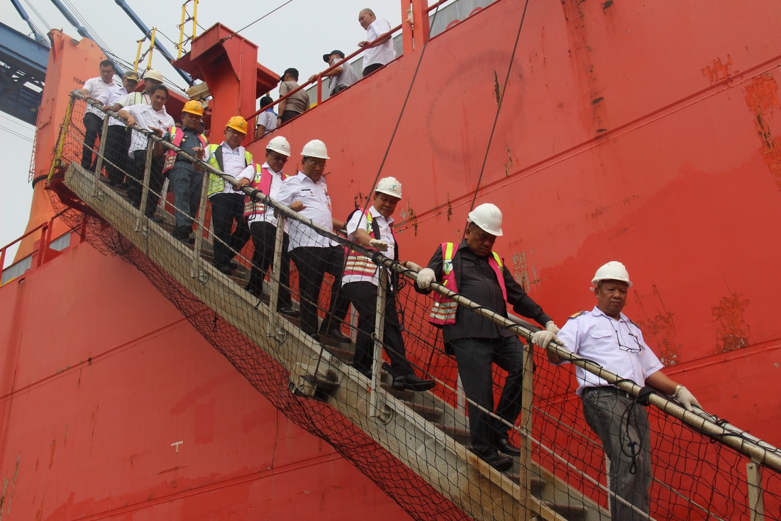 Diketahui peninjauan kapal barang Spil Niken tersebut, Gubernur Olly Dondokambey didampingi Sekprov Sulut Edwin Silangen, Walikota Bitung Maximilaan Lomban, Wawali Bitung Maurits Mantiri, serta Kepala SKPD terkait lingkup Pemprov Sulut.(humas/mlz)