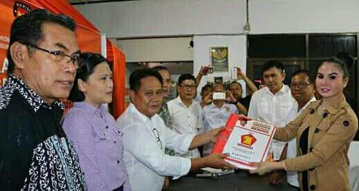 Ketua Dewan Pimpinan Cabang (DPC) Partai GERINDRA Minut Shintia Gelly Rumumpe, didampingi Sekretaris Jantje Longdong, Martinus Tulong, dan LO partai Edwin Pungus, Ryan Wenas, Marvil, serta sejumlah kader partai, membawa langsung berkas tersebut ke KPU Minut, Senin (16/10/2017).