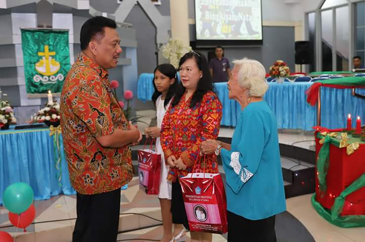 Pemberian bingkisan Natal oleh Gubernur Sulut Olly Dondokambey. Nampak OD akrab dengan lansia