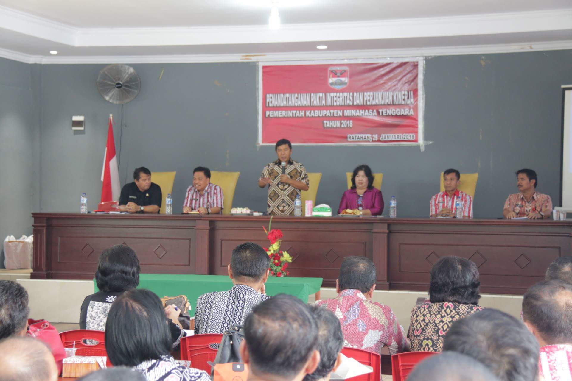 mitramanadoterkini.com, RATAHAN – Pemerintah Kabupaten Minahasa Tenggara lakukan penandatanganan Pakta Integritas dan Perjanjian Kinerja tahun 2018, Kamis (25/01).