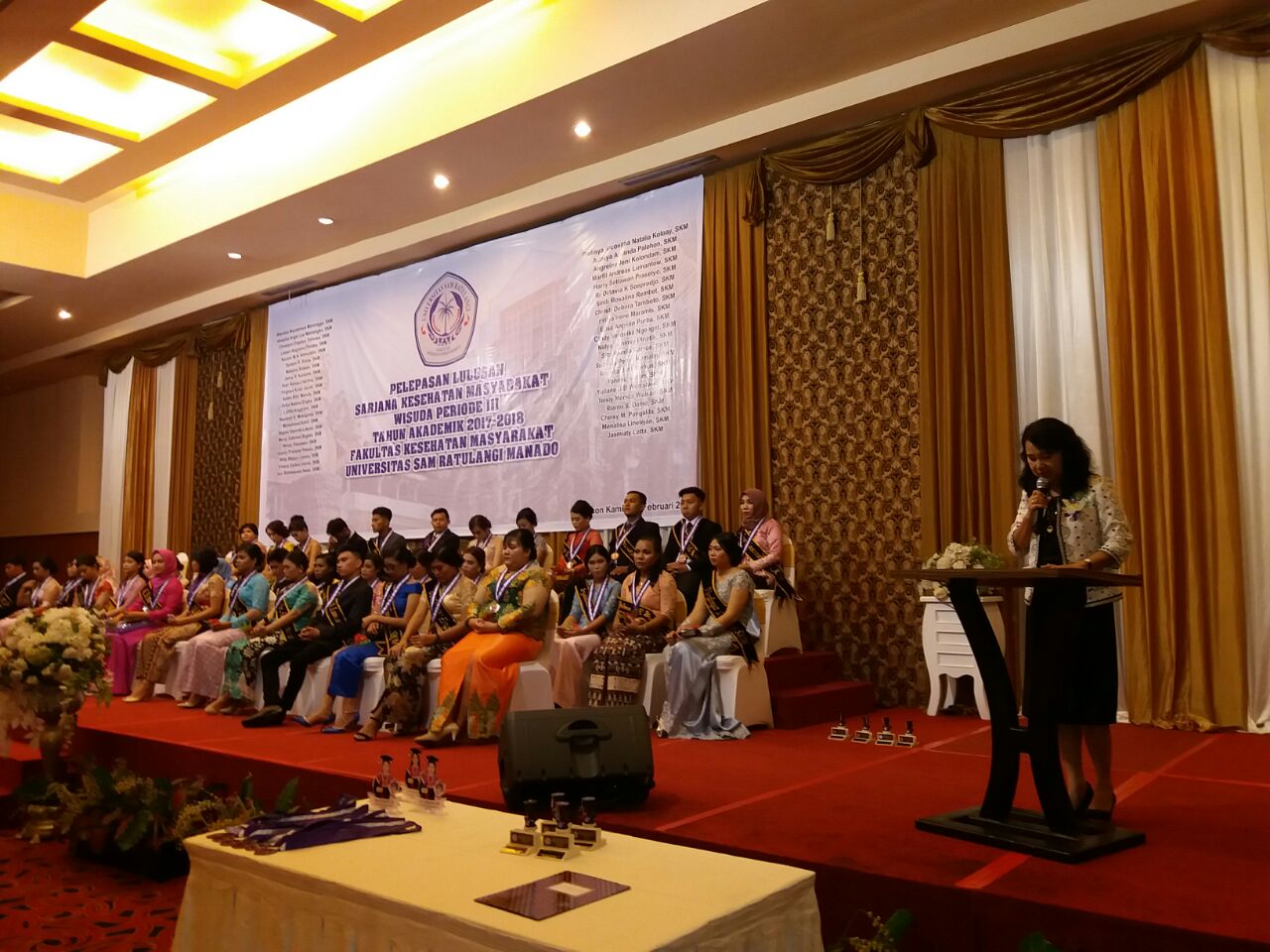 manadoterkini.com, MANADO – Dekan Fakultas Kesehatan Masyarakat (FKM) Universitas Sam Ratulangi (Unsrat) Manado Prof, Dr, dr Grace Kandou melepas total 70 Sarjana Kesehatan Masyarakat (SKM) di M Icon Manado.