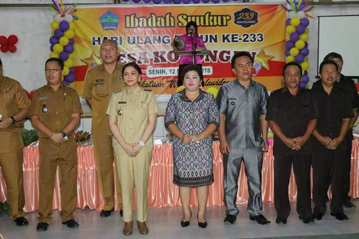 minutmanadoterkini.com, AIRMADIDI-Bupati Minahasa Utara (Minut) Vonnie Anneke Panambunan (VAP), menghadiri HUT ke-233 Desa Kolongan Kecamatan Talawaan, Senin (12/3/2018), didampingi Asisten I Drs Rivino Dondokambey dan Camat Talawaan Johan Wewengkang.
