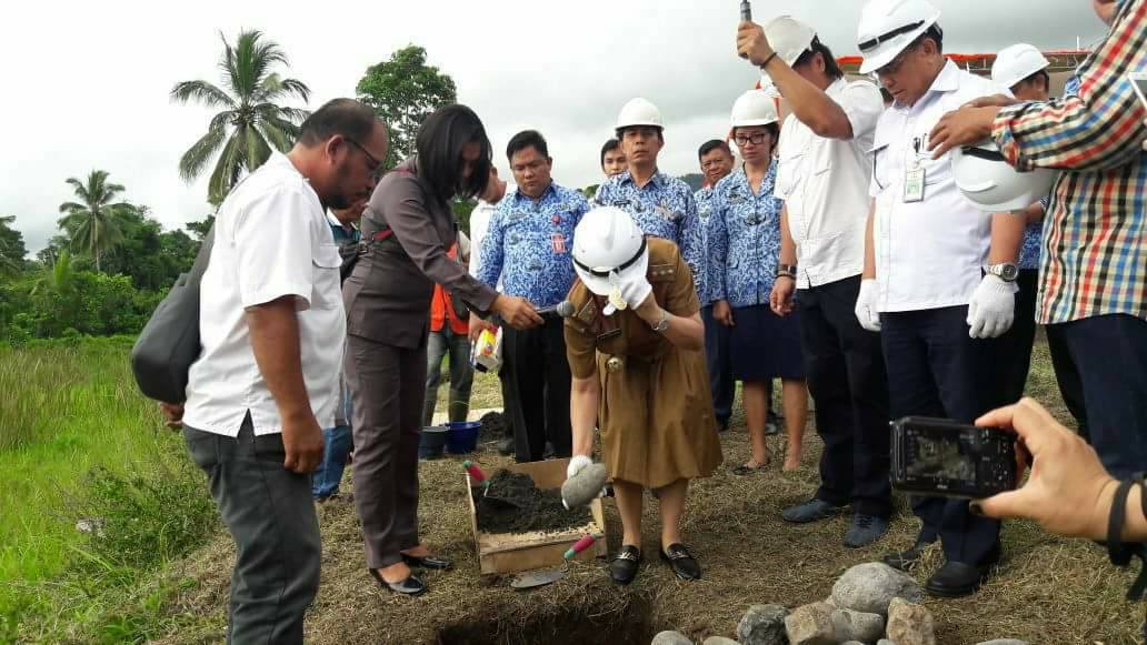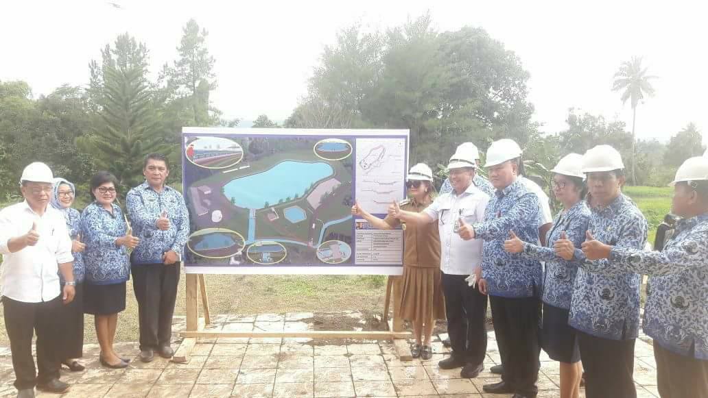 manadoterkini.com, AIRMADIDI-Bupati Vonnie Anneke Panambunan (VAP), Senin (19/3/2018), meletakkan batu pertama pembangunan Embung Wanua Ure Airmadidi Minahasa Utara (Minut), yang sumber dananya berasal dari Anggaran Pendapatan dan Belanja Negara (APBN), Melalui Balai Wilayah Sungai Sulawesi 1.Minut