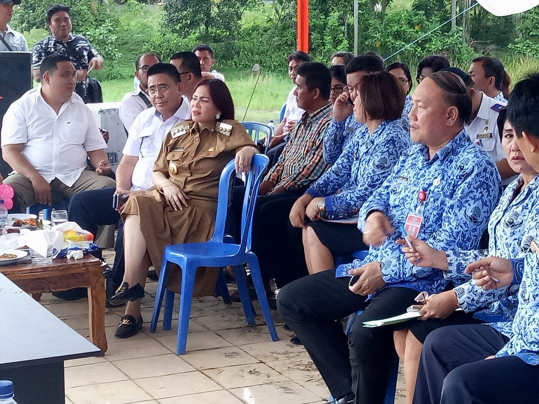 Hadir pada peletakkan batu pertama dan sosialisasi embung Wanua Ure, Sekkab Ir Jemmy Kuhu MA, Asisten II Allan Mingkid, Asisten III Jeane Symon, sejumlah Kepala Perangkat Daerah dan ASN.(ADVETORIAL)