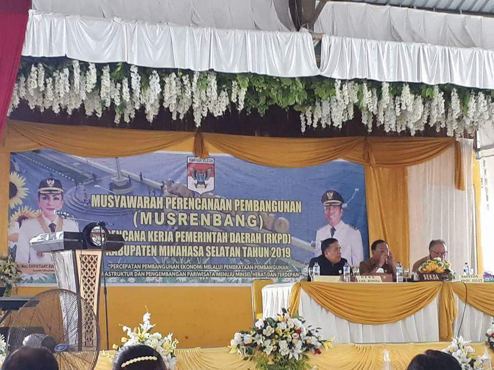 Hadir dalam musrenbang ini, Bupati DR (HC) Christiany Eugenia Paruntu SE yang diwakili oleh Sekdakab Minsel Drs Danny Rindengan MSi, Kepala Bappeda Provinsi Sulawesi Utara (Sulut) Ir Ricky Tumanduk, Wakil Ketua DPRD Minsel Rommy Pondaag SH MH, Kepala Bappelitbang Minsel DR Meydi Maindoka.