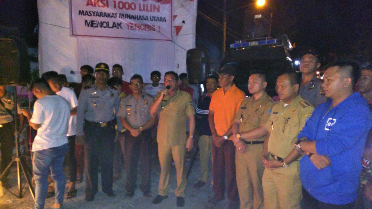 minut manadoterkini.com, AIRMADIDI – Turun bersama warga masyarakat dalam aksi seribu lilin di perempatan Kauditan, Wakil Bupati Minahasa Utara (Minut) Ir Jopie Lengkong, mengutuk aksi bom bunuh diri yang dilakukan teroris di Surabaya Jawa Timur (Jatim).