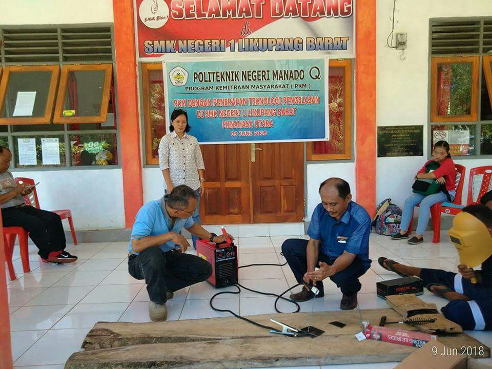 manadomanadoterkini.com, MANADO – Politeknik Negeri Manado melalui Jurusan Teknik Mesin menggelar Program Kemitraan Masyarakat (PKM) yakni tentang Penerapan Teknolagi Pengelasan dilaksanakan Sabtu (9/6/2018) di SMK Negeri I Mubune Kecamatan Likupang Barat Minahasa Utara.