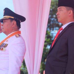 Walikota Maximiliaan J Lomban dan Wakil Wali Kota Bitung Ir Maurits Mantiri sendiri berbagi tugas sebagai Inspektur Upacara (Irup) yang dilaksanakan di stadion Dua Sudara.