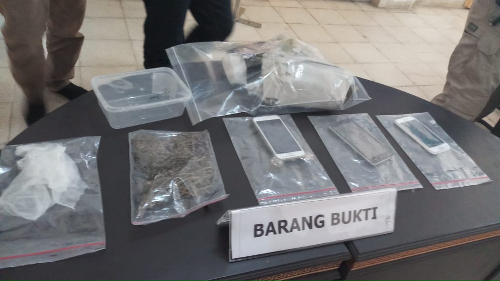 Dari tangan tersangka, didapati barang bukti berupa 3 unit hand phone serta 1 paket ganja yang dibungkus menggunakan tuperware. (angky)