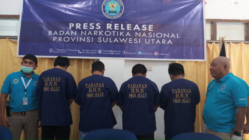 mndoPKepala BNNP Sulut Drs Utomo Heru Cahyono, M.Si saat menggelar Jumpa Pers menyebutkan, empat pelaku saat ini dalam tahanan BNNP dan masih dalam proses pemeriksaan.