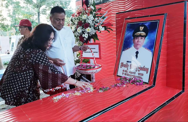 sulutOlly Dondokambey dan ketua TP PKK Sulut ibu Rita Maya Dondokambey Tamuntuan, bersama sejumlah pejabat eselon II lingkup pemprov Sulut memberikan penghormatan, mengheningkan cipta serta menabur bunga di makam mantan Wakil Gubernur Sulut Fredy H Sualang.