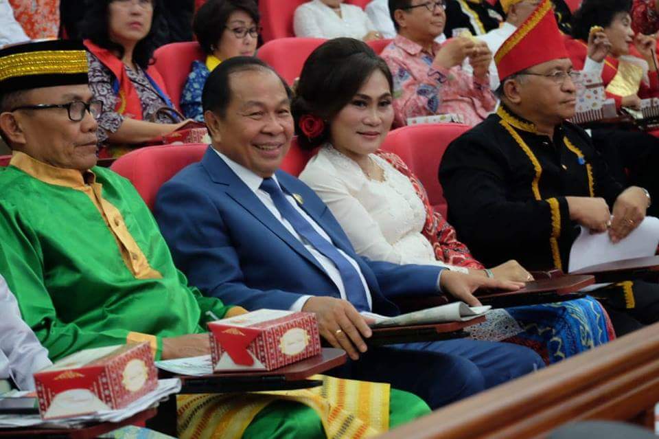 manadomanadoterkini.com, BITUNG – Wali Kota Bitung Maximiliaan J Lomban didampingi istri tercinta Ny. Khouni Lomban Rawung hadir pada Rapat Paripurna Istimewa DPRD Sulawesi Utara dalam Rangka HUT ke-54 Provinsi Sulawesi Utara. Betempat di gedung DPRD Provinsi Sulut, Senin (24/09/2018).