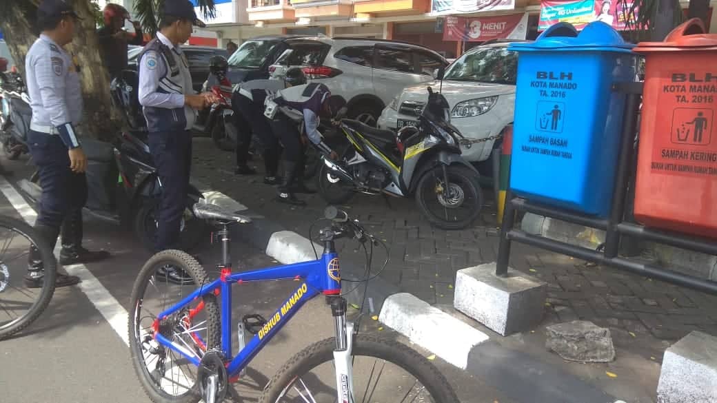 manadomanadoterkini.com, MANADO — Penertiban kendaraan yang parker sembarangan di kawasan Boulevard makin digiatkan. Kali ini Tim Patroli dari Dishub Manado yang menggunakan sepeda dengan sigap melakukan penertiban kendaraan baik roda dua maupun roda 4.