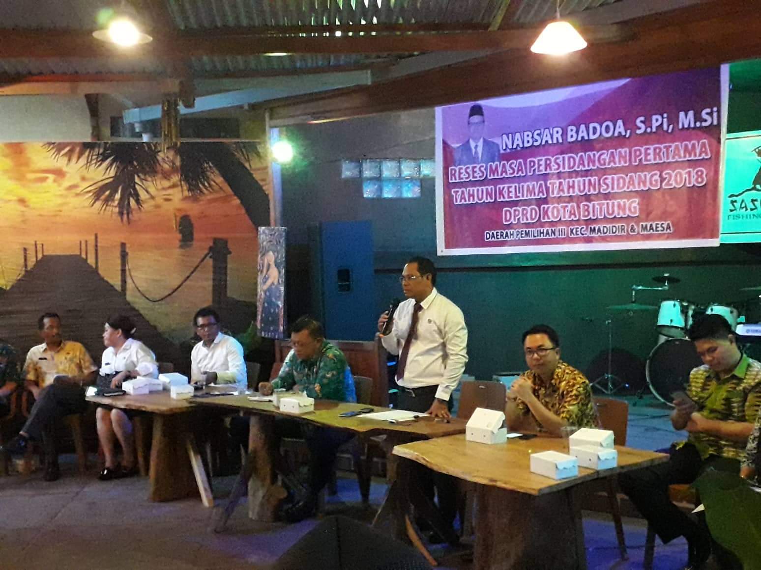 bitungmanadoterkini.com, BITUNG – Anggota DPRD Kota Bitung dari Partai Keadilan Persatuan Indonesia (PKPI) Nabsar Badoa, SPI MSi menyerap Aspirasi Masyarakat yang ada di Kecamatan Madidir dan Kecamatan Maesa, Kamis (22/11/2018).