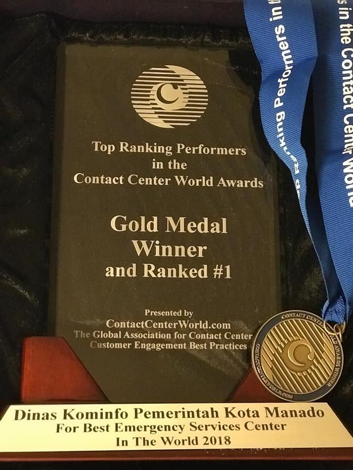 PRESTASI luar biasa ditorehkan Pemerintah Kota (Pemkot) Manado diajang internasional. Komunitas Contact Center World (CCW) memberikan medali emas (Gold Medal) kategori layanan darurat Best Emergency Service Center in the World 2018.