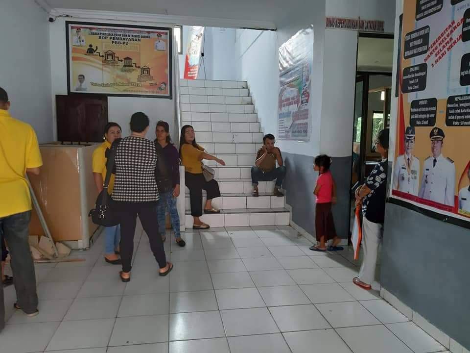 Tidak hanya itu, mereka juga mengeluhkan kurangnya fasilitas tunggu sehingga puluhan warga yang mengantre harus duduk di lantai dan tangga.