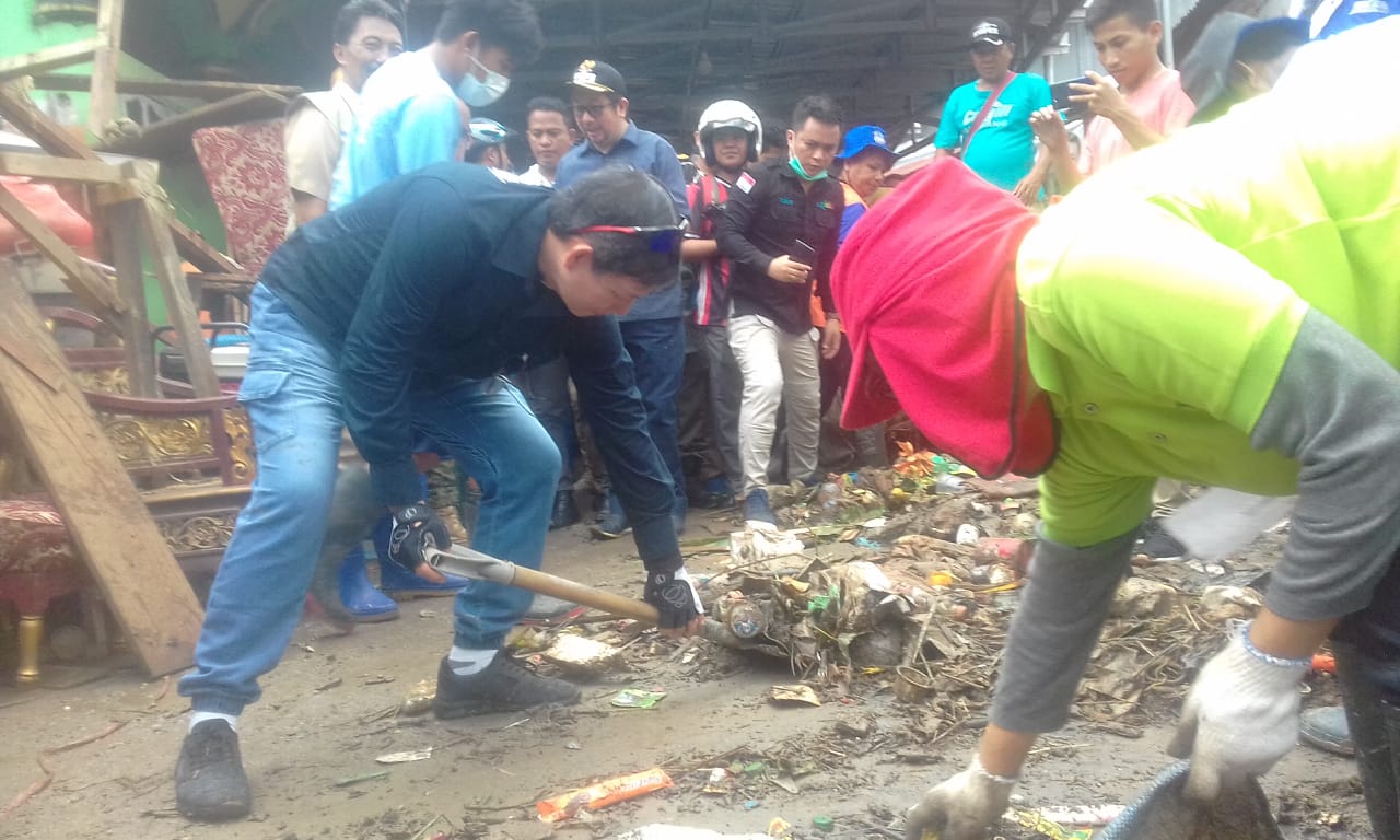 Bahkan Walikota GSVL turun langsung mengangkat sampah plastik akibat banjir, yang ada di depan rumah warga kelurahan Mahawu Lingkungan III.