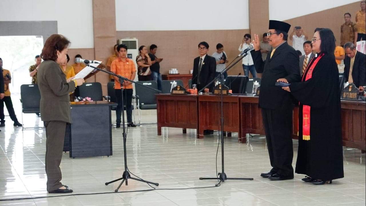 Dipimpin Ketua DPRD Jenny Johana Tumbuan SE, pengambilan sumpah/janji jabatan berlangsung lancar.
