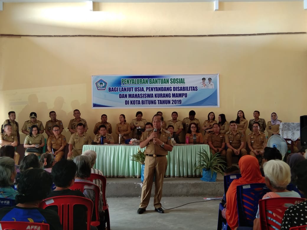bitungmanadoterkini.com, BITUNG – Pemerintah Kota (Pemkot) Bitung di bawah kepemimpinan Max Lomban sebagai Wali Kota dan Maurita Mantiri sebagai Wakil Wali Kota Bitung menyalurkan sedikitnya Rp. 1.933.500.000 Dana Bantuan Sosial (Bansos) kepada para Lanjut Usia (Lansia) kurang mampu, mahasiswa kurang mampu, serta penyandang disabilitas di 8 kecamatan yang ada di Kota Bitung, Senin (01/04/2019).