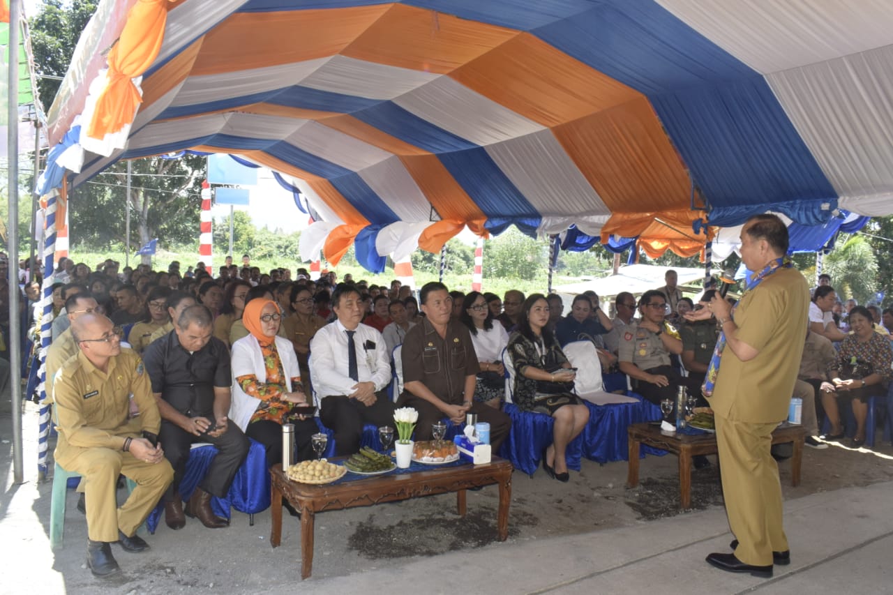 bitungmanadoterkini.com, BITUNG – Wali Kota Bitung Max J Lomban Menyerahkan Insentif Hamba Tuhan, Pala/Rt, Selisih gaji ASN se- Kecamatan Matuari juga Kartu BPJS Ketenagakerjaan program Tali kasih Bersama pihak Bank SulutGo dan pihak BPJS dirangkaikan dengan peresmian gedung rawat Inap Puskesmas kecamatan Matuari yang bertempat di Puskesmas Sagerat, Kecamatan Matuari, Selasa (09/04/2019).
