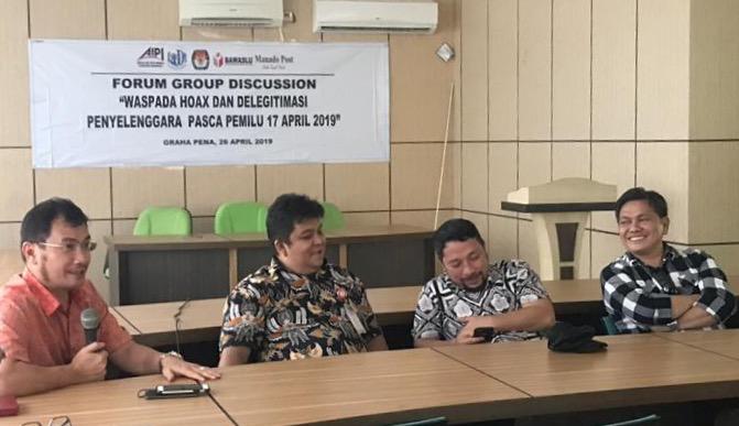 FGD itu sendiri mengangkat tema Fenomena Hoax dan Delegitimasi Penyelenggara Pemilihan Umum, dengan pembicara diantaranya Gubernur Sulut Olly Dondokambey, Ferry Daud Liando Ketua Jurusan Ilmu Pemerintahan Fisip Unsrat, Salman Saelangi Anggota KPU Sulut, Herwyn Malonda Ketua Bawaslu Sulut, Johny Suak koordinator JADI Sulut.