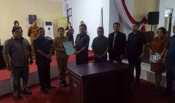 Bupati Minahasa Utara(Minut) Vonnie Anneke Panambunan STh menghadiri Rapat paripurna yang di gelar Dewan Perwakilan Rakyat Daerah (DPRD) dengan agenda Penyampaian Rekomendasi DPRD Terhadap Laporan Keterangan Pertanggung Jawaban (LKPJ) Bupati Minahasa Utara Tahun Anggaran 2018 di Ruang Rapat Paripurna, Selasa (30/4/2019).