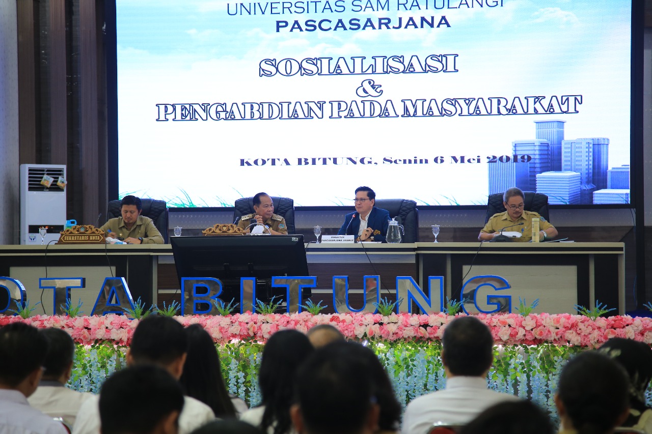 sulutmanadoterkini.com, BITUNG – Wali Kota Bitung Max Lomban membuka kegiatan Sosialisasi dan Pengabdian Pada Masyarakat (PPM) Pasca Sarjana Universitas Sam Ratulangi (Unsrat) Manado di Kota Bitung, yang bertempat di BPU Kantor Pemerintah Kota Bitung. Senin (06/05/2019)