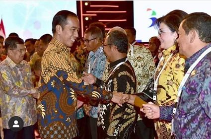 Bupati Minsel Christiany Eugenia Paruntu SE menyalami Presiden Joko Widodo usai pembukaan musrembang nasional di Jakarta