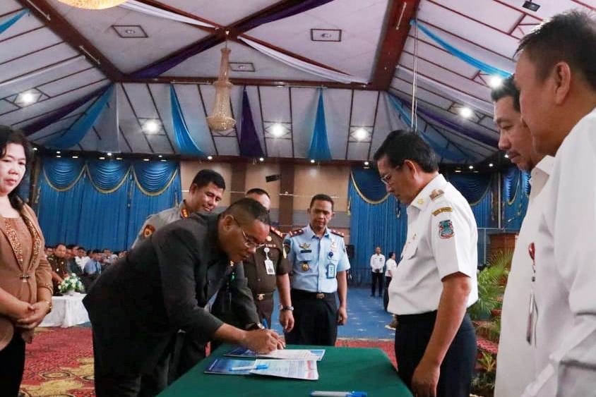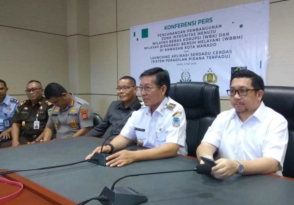Pencanangan Zona Integritas Menuju Wilayah Bebas Korupsi (WBK) dan Wilayah Birokrasi Bersih Melayani (WBBM) dan Launching Aplikasi Sistem Peradilan Pidana Terpadu, Pemerintah Kota Manado bekerjasama dengan Kejaksaan Negeri Tinggi Manado, Pengadilan Negeri Manado, Polres Manado, dan Rutan Manado optimis bangun wilayah kerja yang bersih dan baik. Kegiatan yang dihadiri Forkopimda Kota Manado, Rabu (08/05/2018) pagi tadi di Aula Serba Guna Kantor Walikota.