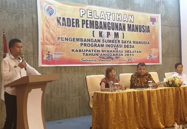 manadomanadoterkini.com, AMURANG-Guna mendorong pembagunan partisipasi Desa oleh masyarakat, Dinas Pemberdayaan Masyarakat Desa (PMD) Kabupaten Minahasa Selatan (Minsel) bekerjasama dengan P3MD dan PID Minsel yang juga selaku pelatih atau nara sumber, pada Rabu (3/7) menggelar Pelatihan Kader Pembangunan Manusia (KPM) di Hotel Sutanraja Amurang.