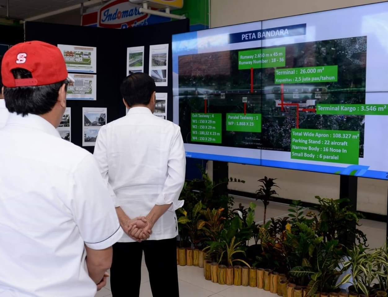 Di lokasi itu, Kepala Negara mendapatkan penjelasan dan pemaparan data mengenai proyek perluasan bandara oleh Direktur Operasi Angkasa Pura I, Wendo Asrul Rose.