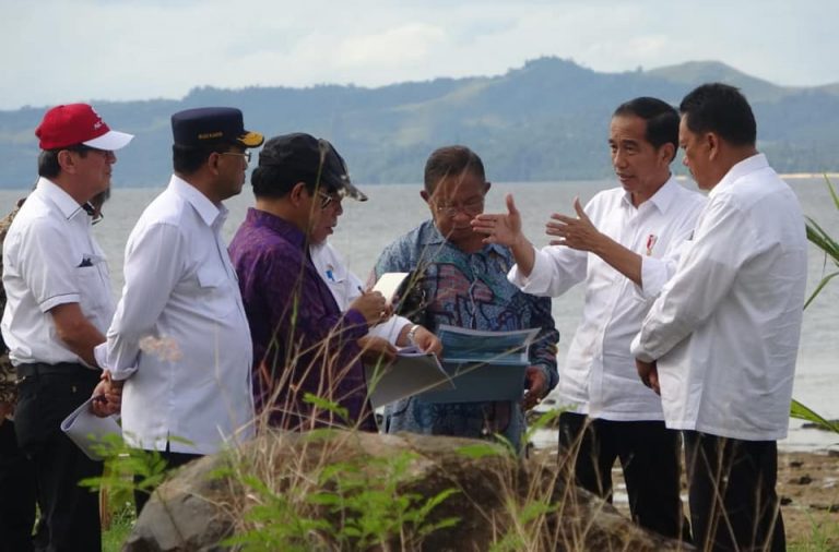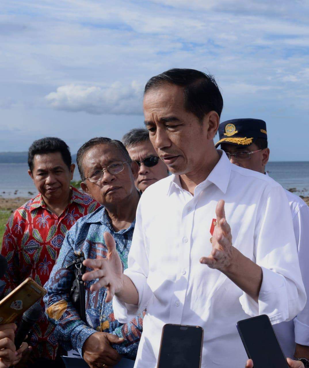 Usai meninjau Bandara Sam Ratulangi, Jokowi ditemani Gubernur Sulut Olly Dondokambey dan didampingi sejumlah Menteri Kabinet kerja meninjau rencana pembangunan KEK Pariwisata Likupang.