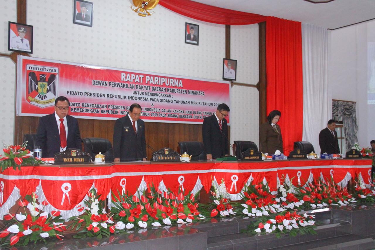 Ajakan tersebut diungkapkan Bupati Ir Royke Oktavian Roring MSi (ROR) didampingi Wakil Bupati Minahasa Robby Dondokambey SSi MM, usai menghadiri Rapat Paripurna DPRD Kabupaten Minahasa untuk Mendengarkan Pidato Presiden Republik Indonesia Pada Sidang Tahunan MPR RI Tahun 2019 dan Pidato Kenegaraan Presiden Republik Indonesia dalam Rangka HUT Ke 74 RI Tahun 2019 Pada Sidang Bersama DPD RI dan DPR RI, Jumat (16/8) tasi di Ruang Sidang DPRD Kabupaten Minahasa.