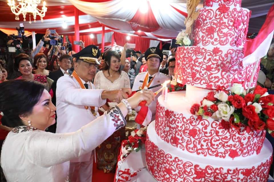 Selanjutnya acara dilanjutkan dengan pemasangan lilin Hut RI ke-74 yang dilakukan langsung oleh Gubernur Olly Dondokambey.sekprov