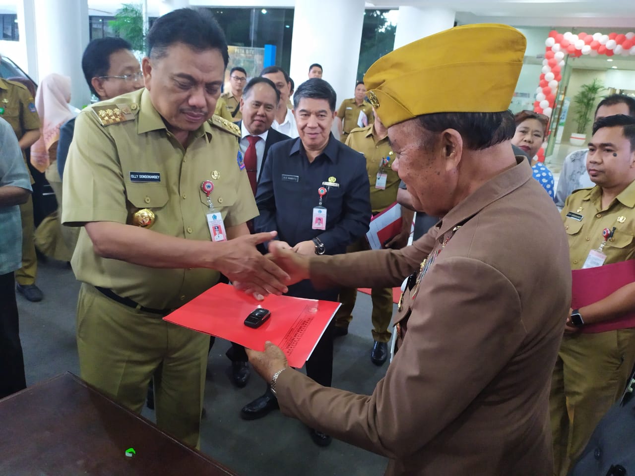 Mobil Toyota Kijang Innova warna hitam keluaran tahun 2018 itu diserahkan langsung Gubernur Olly kepada Ketua LVRI Sulut Kolonel (Purn) Boyke Kambey di Lobi Kantor Gubernur, Selasa (20/8/2019).